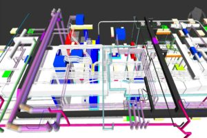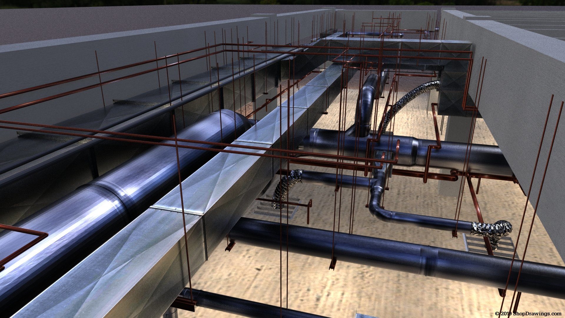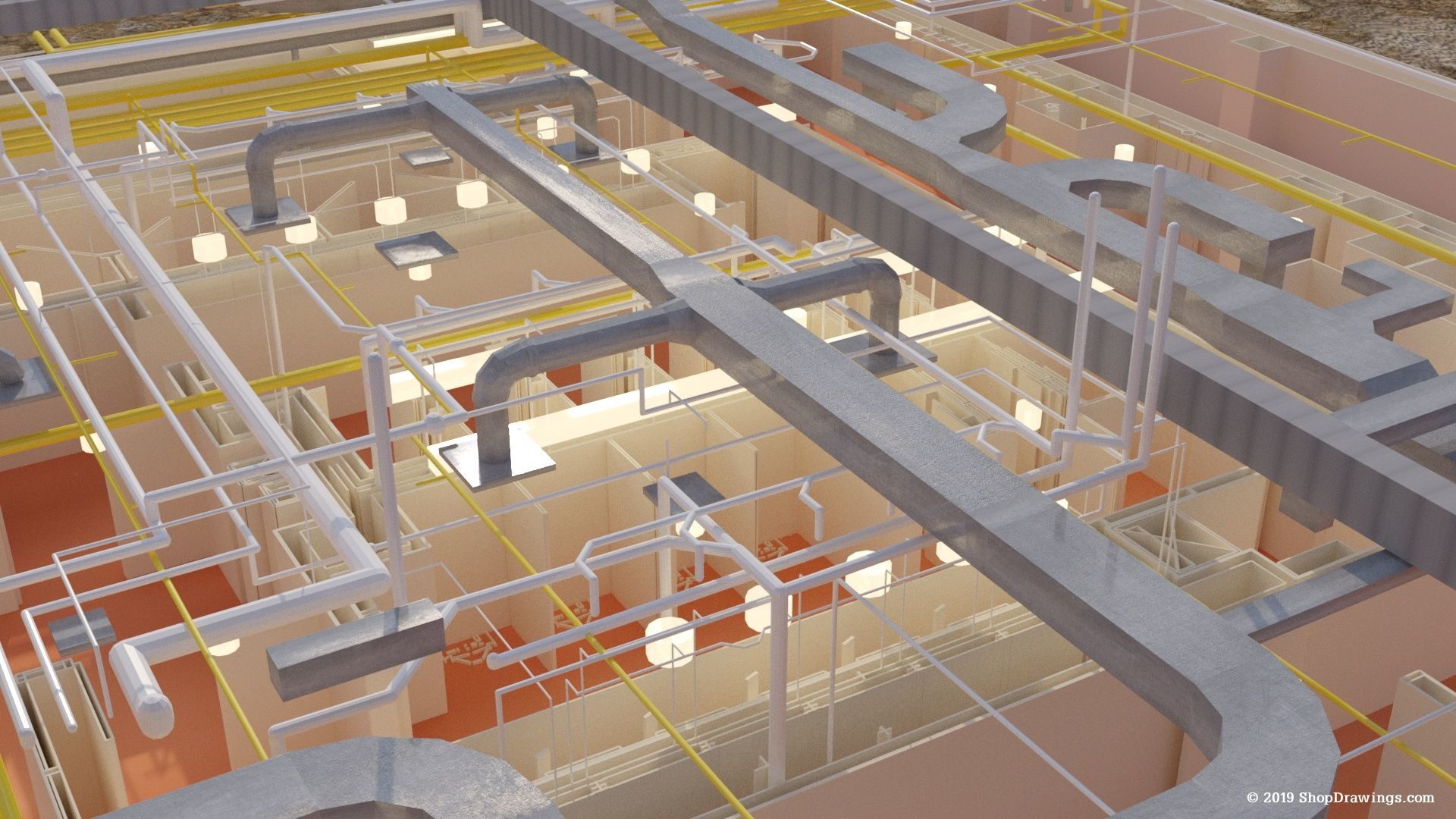 The 3D models you are viewing on our website are not provided by an Architect or any other outside source. We are creating our models with the information interpreted from the contract drawings, which may also include structural shop drawings when available. Our models are created generically to include necessary information. They omit doors, windows and other non-essential items for easier interpretation. We display the partitions of the floor for about half of the walls height, to reduce the amount of elements interfering with the viewpoint and to allow an easier navigation through the models. We show suspended ceilings for coordination purpose and for easier visualization of the ceiling heights. We display light fixtures with 7″ height, when submittals are not provided, to prevent possible collisions with the mechanical trades. Our policy is to model all projects to ensure accuracy, economy and efficiency in its design.